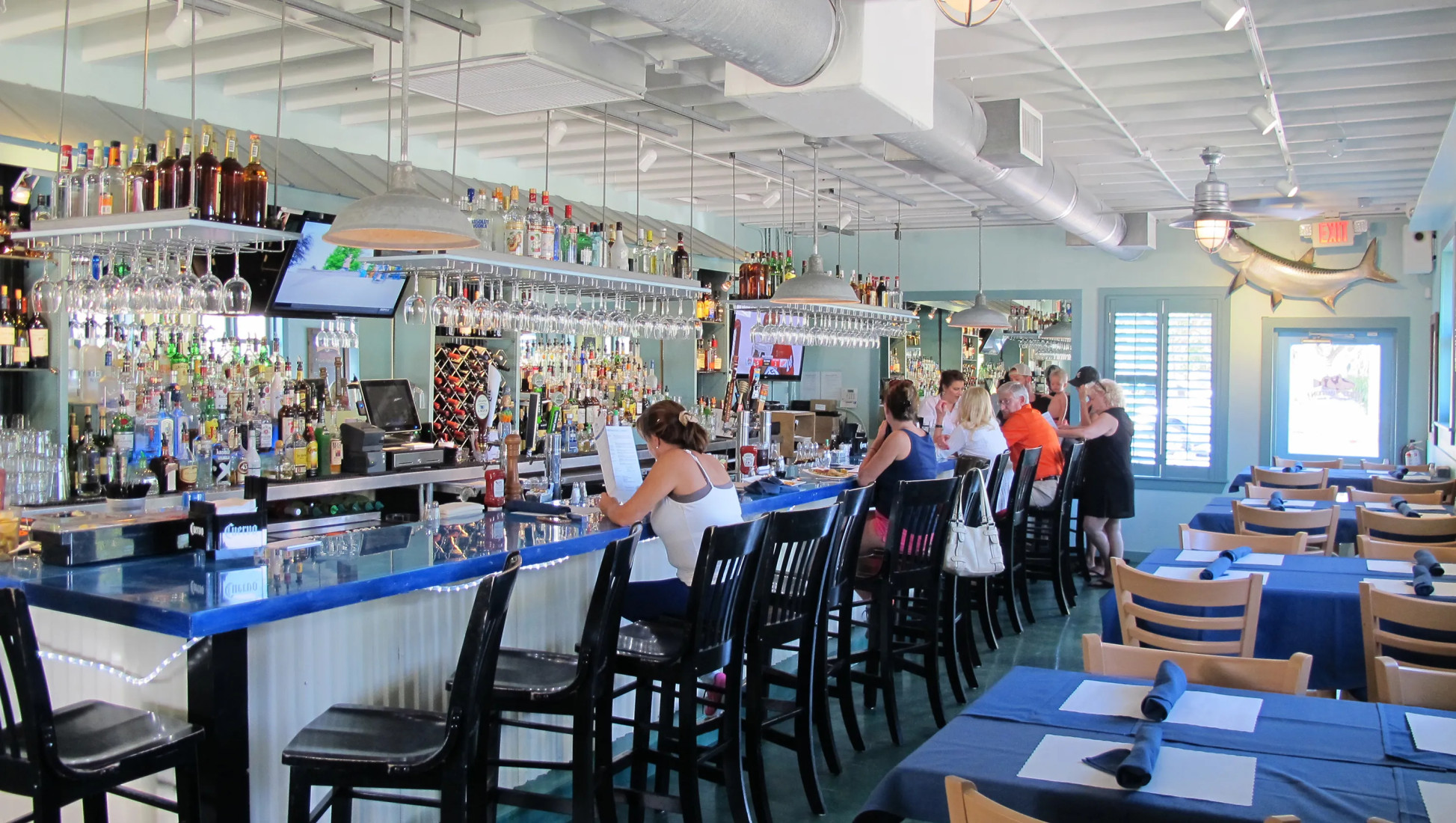 Located in the Hilton Hotel on US41. Beautiful Bar with couches and sitting areas. A selection of fine prime beef and of course The Don Shula Miami Dolphins theme throughout the restaurant. This is an upscale steakhouse.