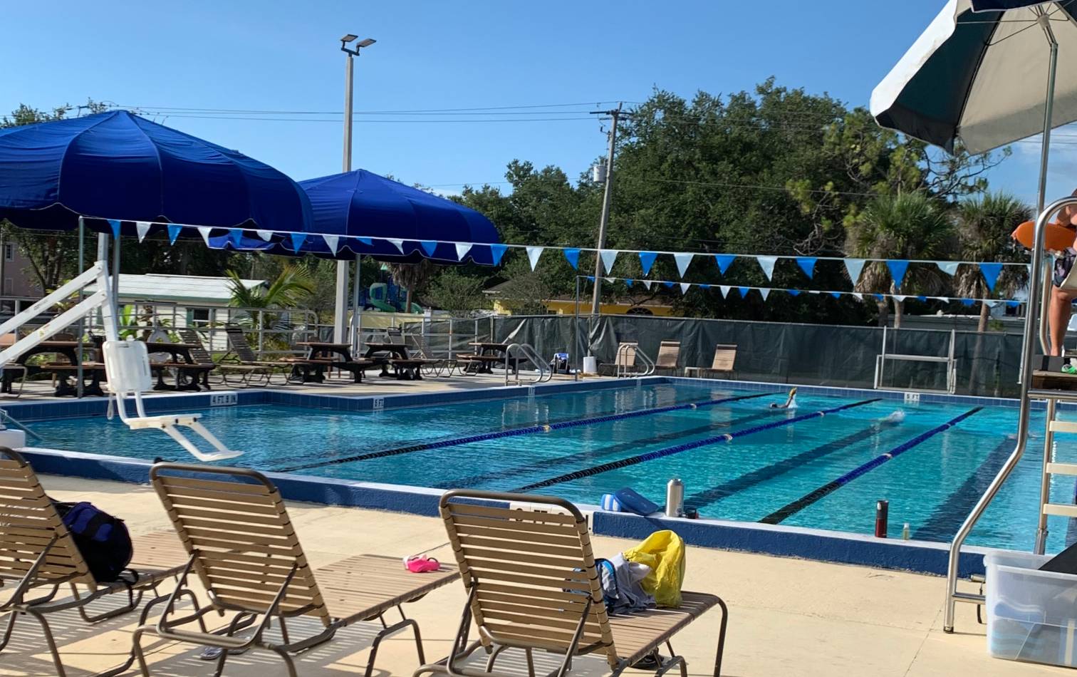 Facilities include: 25 yd by 25 meter pool (heated), children’s activity pool (heated), 110 ft. water slide, plunge pool (heated).